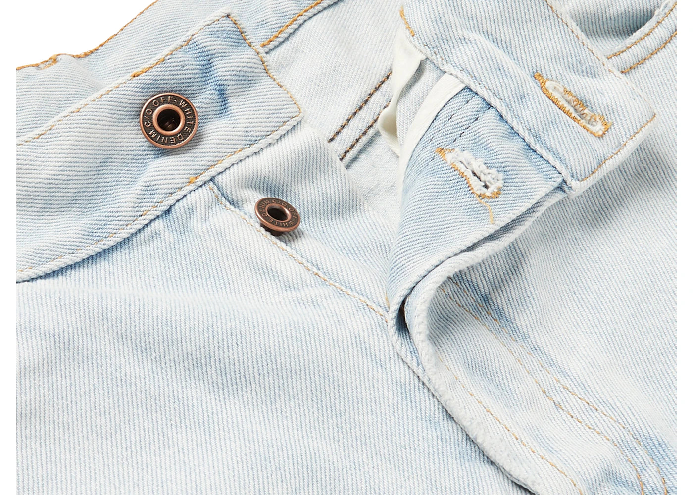 The OFF-WHITE x Ev Bravado Distressed Bleach Denim Jeans Bleach/Black is now available at Side Kicks!