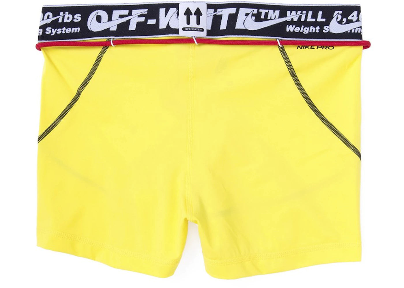 The OFF-WHITE x Nike Women's Training Shorts Opti Yellow is now available at Side Kicks!