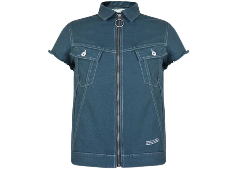 The OFF-WHITE Zip Up Denim Vest Blue is now available at Side Kicks!
