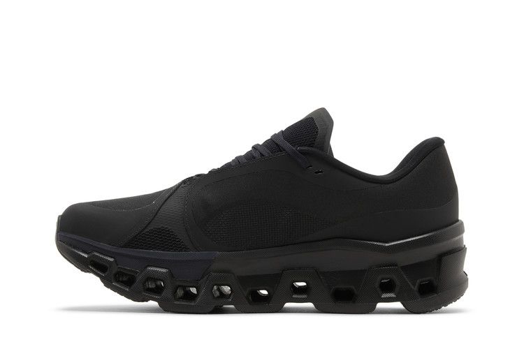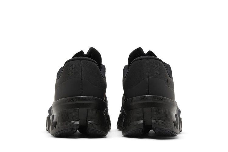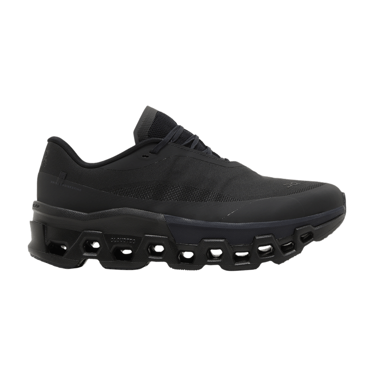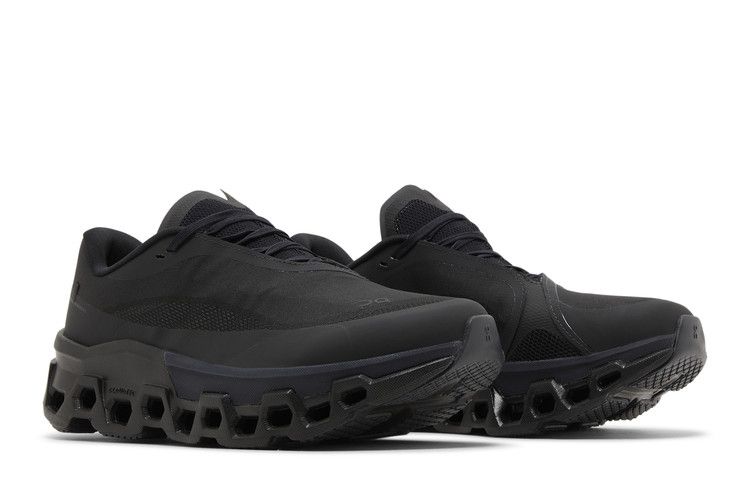 The On Cloudmonster 2 POST ARCHIVE FACTION Black features CloudTec cushioning, a nylon Speedboard for propulsion, and Helion superfoam for responsive steps. The lightweight woven upper includes ventilation, while the monochrome design contrasts with the chunky geometric midsole.