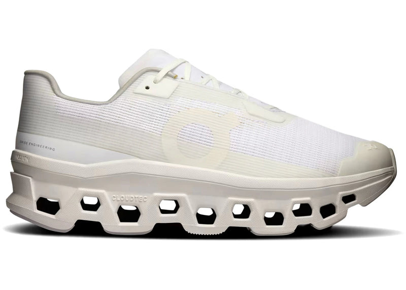 The On Running Cloudmonster Void All White is now available at Side Kicks!