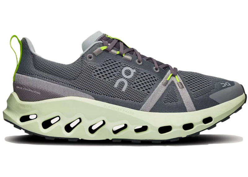The On Running Cloudsurfer Trail Iron Lima is now available at Side Kicks!