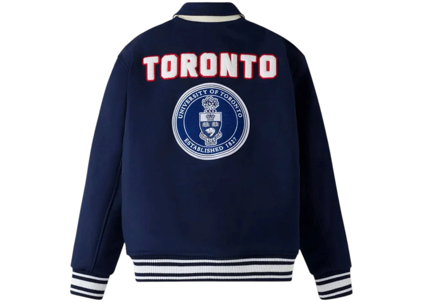 The OVO University of Toronto Campus Varsity Jacket Navy is now available at Side Kicks!