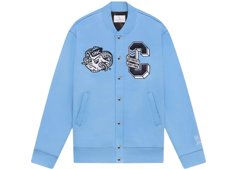 The OVO x NCAA North Carolina Tar Heels Varsity Jacket Light Blue is now available at Side Kicks!