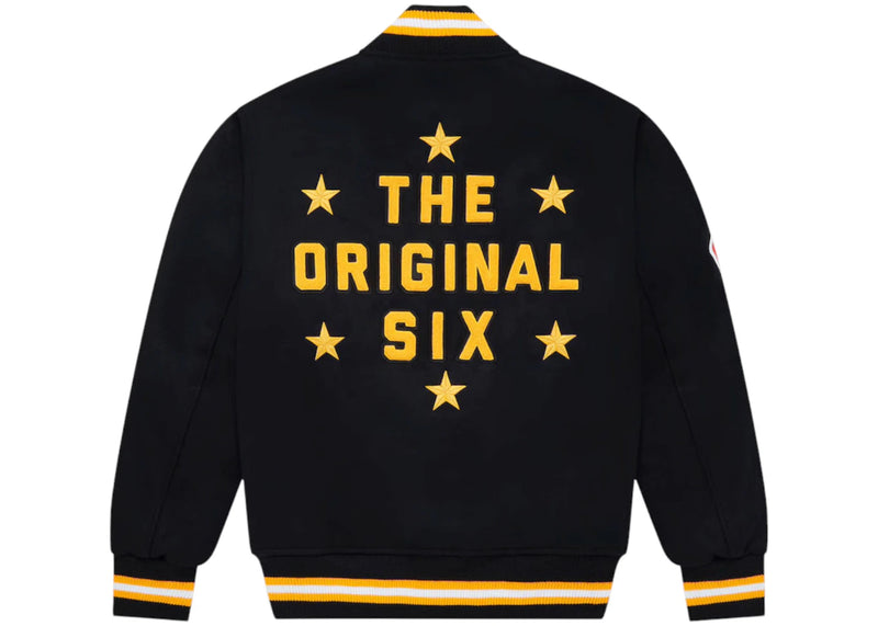 The OVO x NHL Boston Bruins Varsity Jacket Black is now available at Side Kicks!