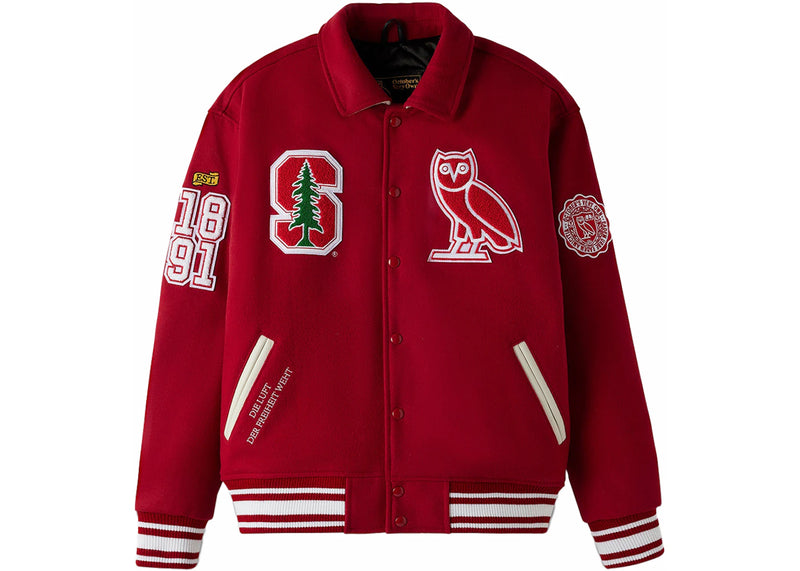 The OVO x Stanford Univesity Campus Varsity Jacket Stanford Red is now available at Side Kicks!