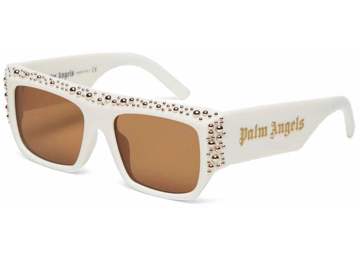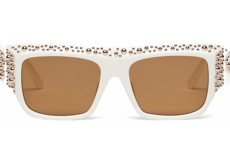 The Palm Angels Casablanca Studded Square-Frame Sunglasses White/Caramel (PERI008S22PLA0010160) is now available at Side Kicks!