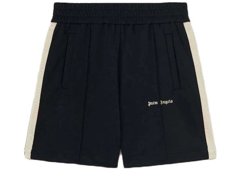 The Palm Angels Logo Track Shorts Black/Off White is now available at Side Kicks!