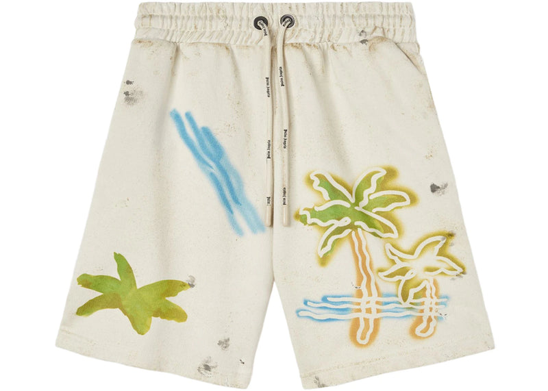 The Palm Angels Palm Neon Sweat Shorts Off-White/Multi is now available at Side Kicks!