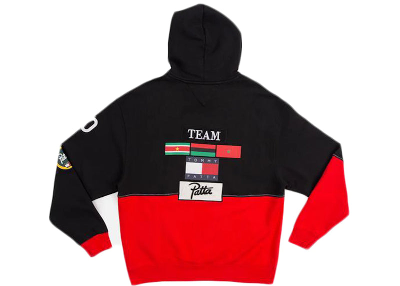 The Patta x Tommy Jeans Hooded Sweatshirt Black/High Risk Red is now available at Side Kicks!