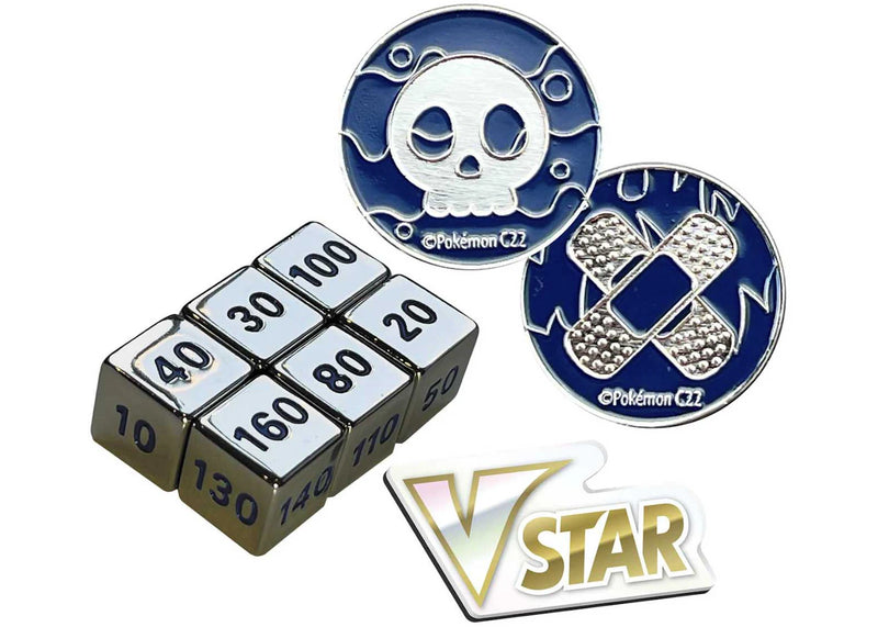 Two identical decks of cards are included in the Pokemon TCG Pokemon Go Pokemon Center Elite Trainer Box Plus 2X Lot set. Each deck comes with metal damage counter dice...