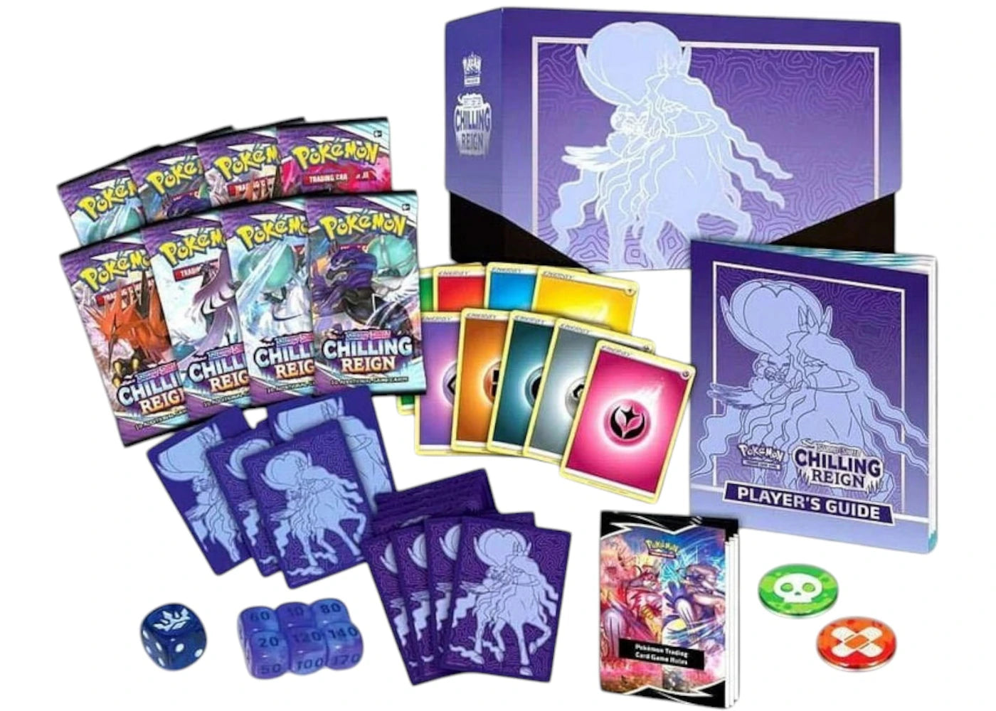 Pokémon Chilling Reign has over 190 cards in the set and is the first set to introduce the Galarian versions of the first geeneration legendary birds, Articuno, Zapdos, and Moltres. With each purchase of this Pokémon product, you will receive two (2) Pokémon Chilling Reign Elite Trainer Boxes (Shadow Rider Calyrex). If you would like more details on the contents of this Pokémon Chilling Reign Elite Trainer Box click here.