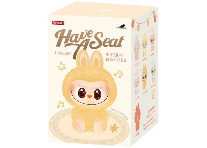 Labubu gets comfy in the “Have a Seat” vinyl plush blind box series by Pop Mart. Each box features a mystery seated plush figure with charming detail and soft materials. Measures approx. 15–20cm tall and made with a mix of PVC and polyester. A playful, collectible plush for Labubu fans and designer toy enthusiasts.