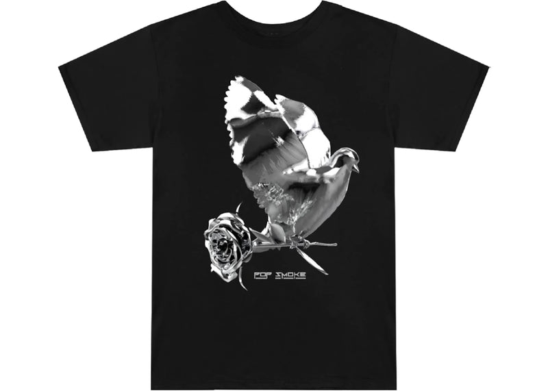 The Pop Smoke Dove + Rose T-Shirt Black is now available at Side Kicks!