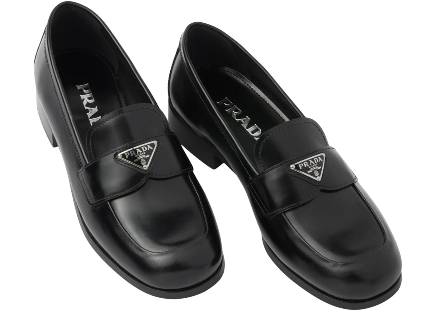 The Prada 25mm Penny Loafer Black Brushed Leather is now available at Side Kicks!