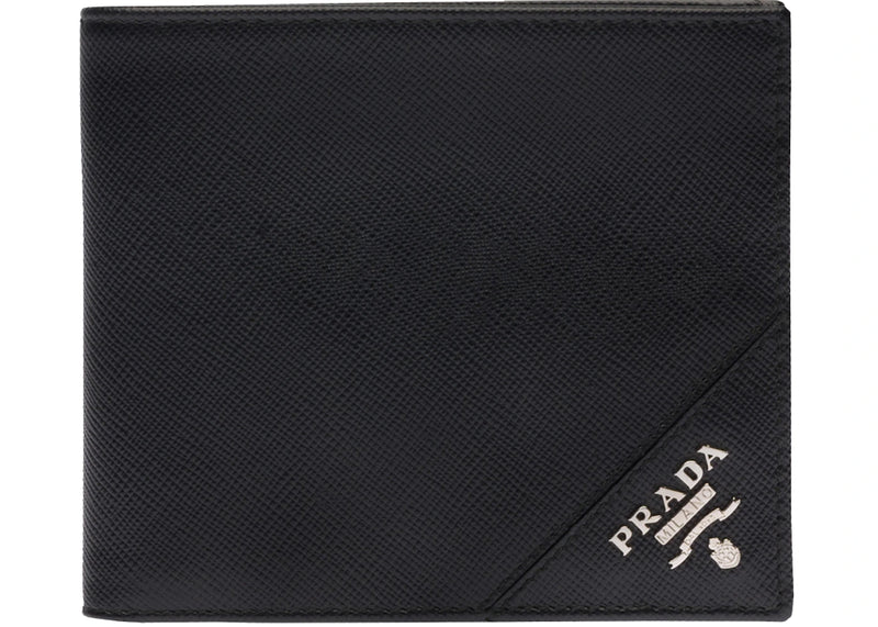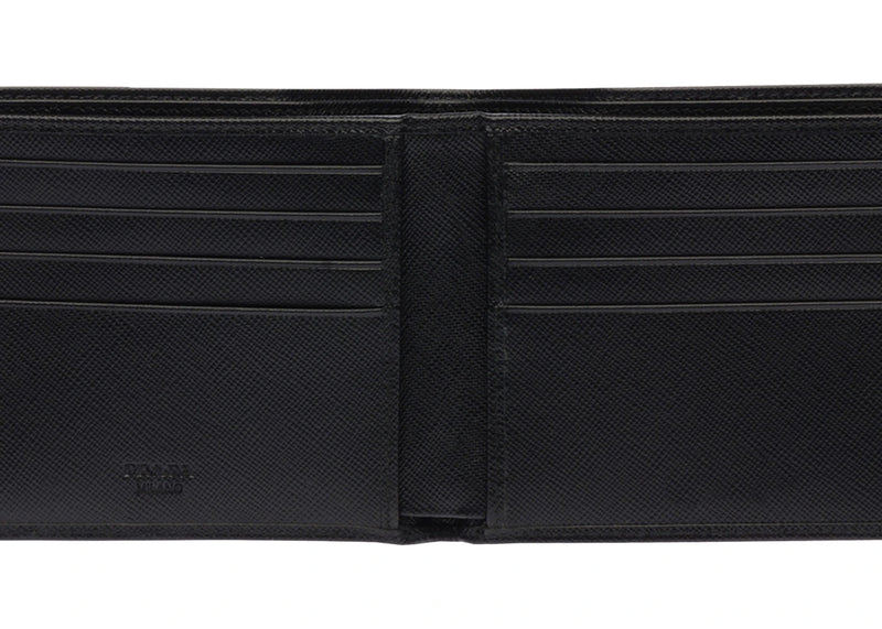 Prada Bi-Fold Wallet Saffiano Leather Nero/Baltico