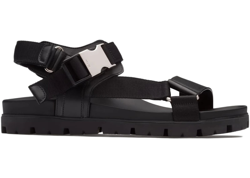 The Prada Leather And Technical Fabric Sandal Black is now available at Side Kicks!