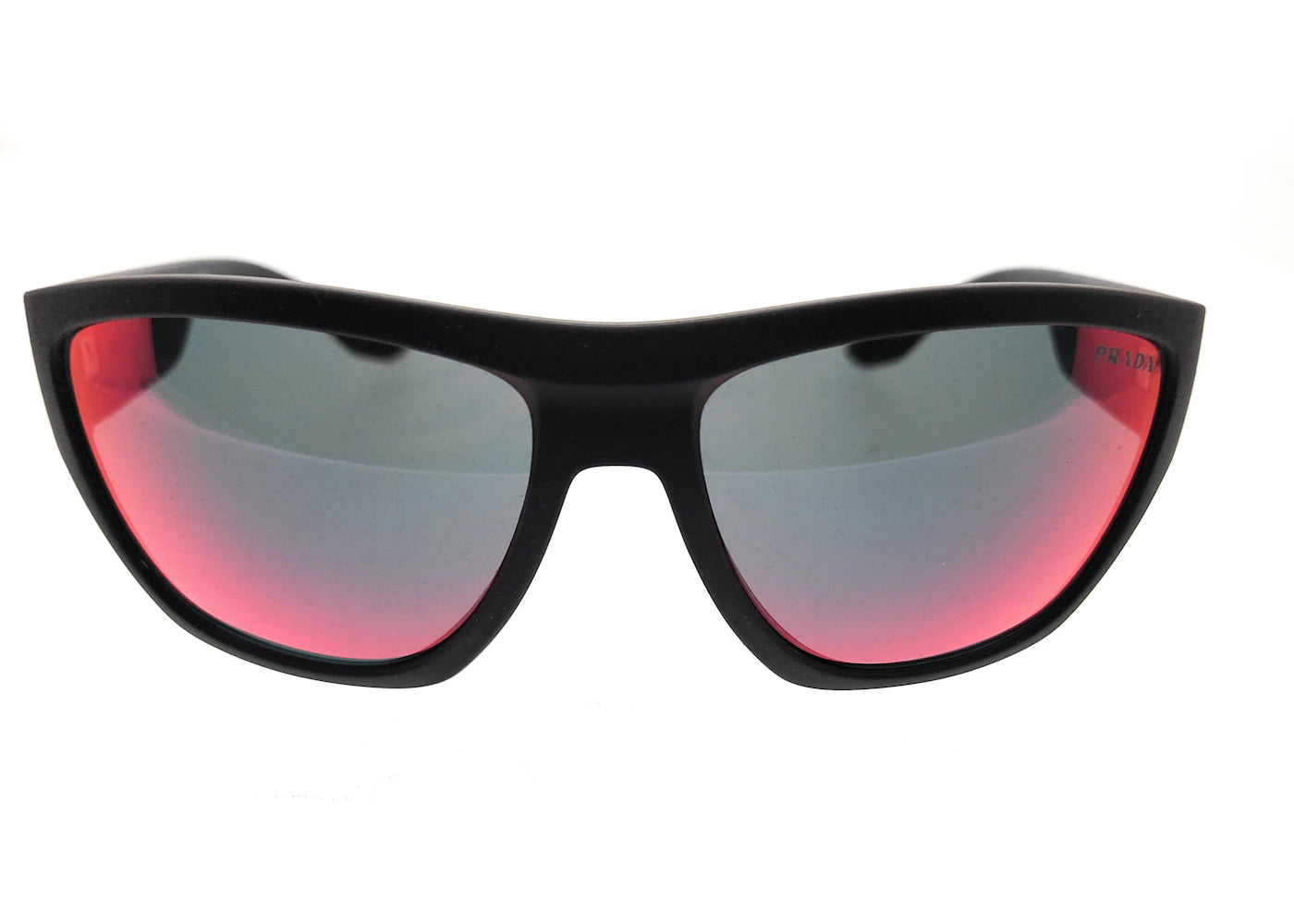 Prada Linea Rossa Rectangular Sunglasses Rubber Black/Dark Grey Mirror (0PS 08VS)