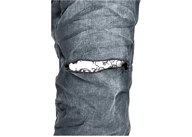 The Purple Brand Black Resin Knee Slit Jean Black is now available at Side Kicks!