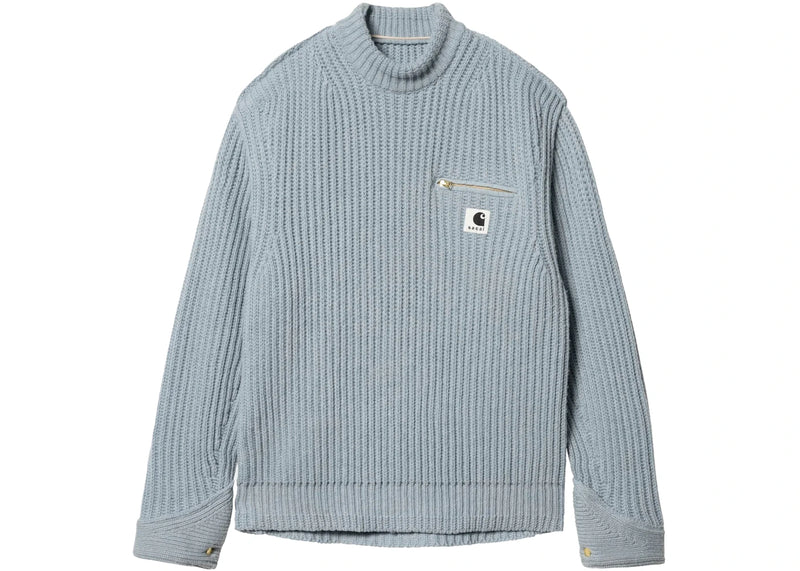 The Sacai x Carhartt WIP Knit Detroit Pullover Light Blue is now available at Side Kicks!