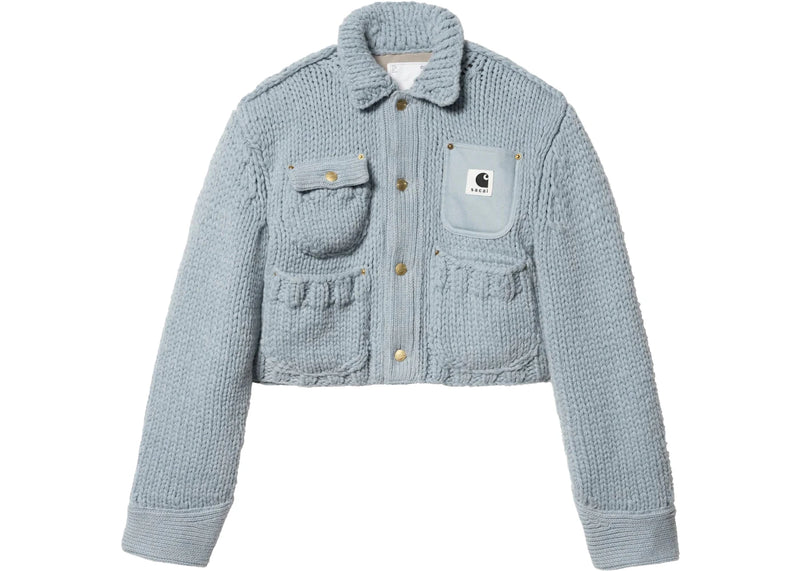 The Sacai x Carhartt WIP Women's Knit Michigan Jacket Light Blue is now available at Side Kicks!