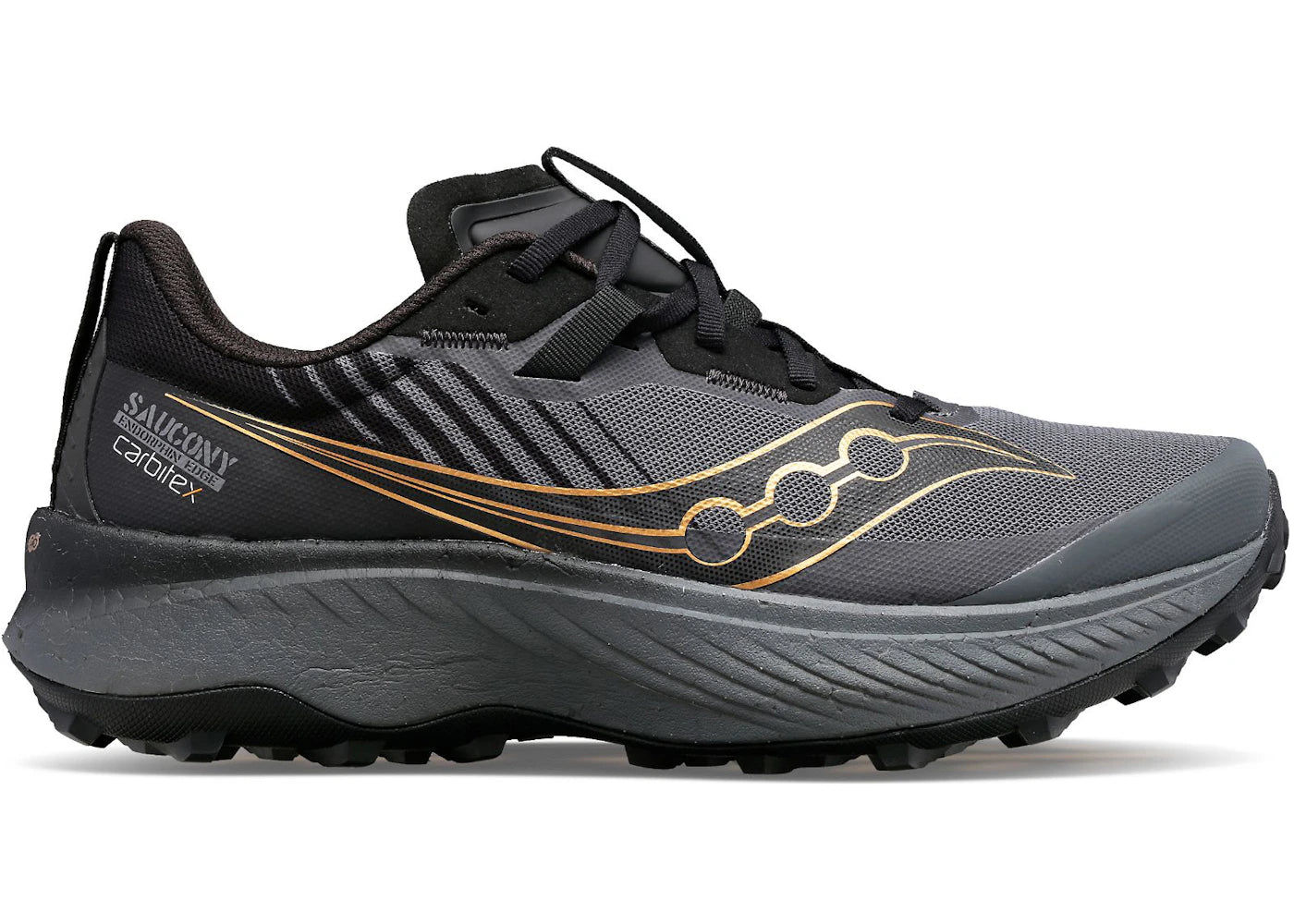 The Saucony Endorphin Edge Black Goldstruck is now available at Side Kicks!