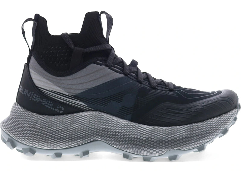 The Saucony Endorphin Trail Mid Runshield Black Gravel (Women's) is now available at Side Kicks!