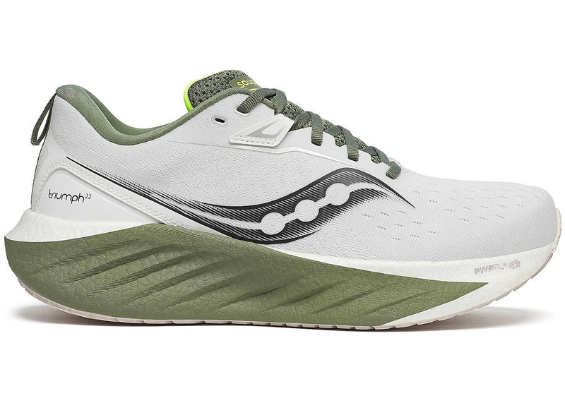 The Saucony Triumph 22 White Olivine is now available at Side Kicks!