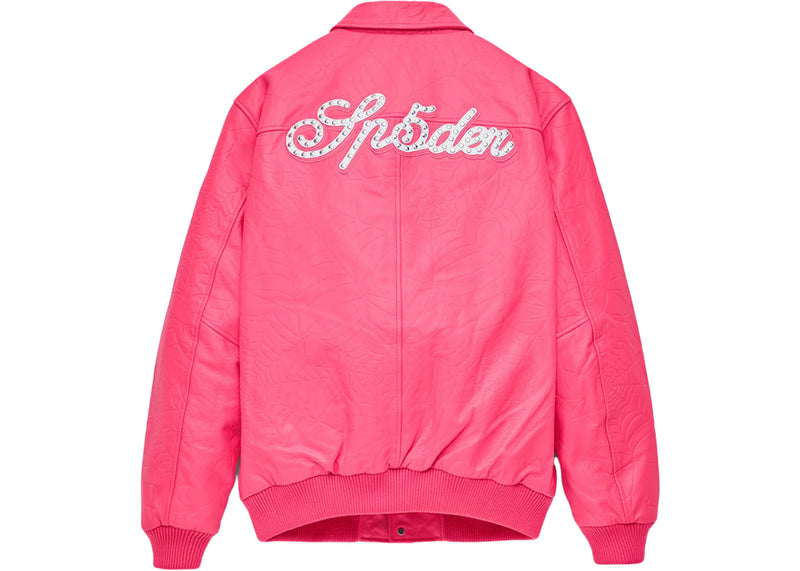 The Sp5der Debossed Web Leather Jacket Pink is now available at Side Kicks!