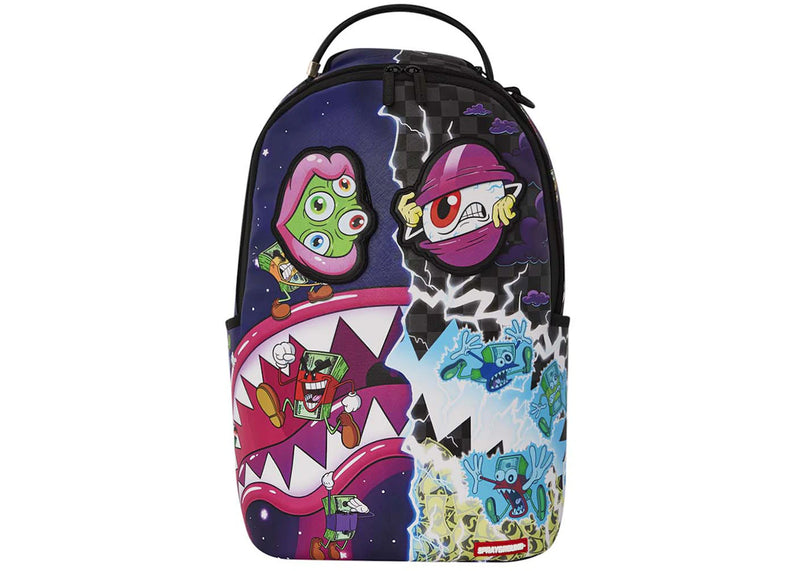 The Sprayground Money Boys Split Crazy Eyes Backpack Multicolor is now available at Side Kicks!