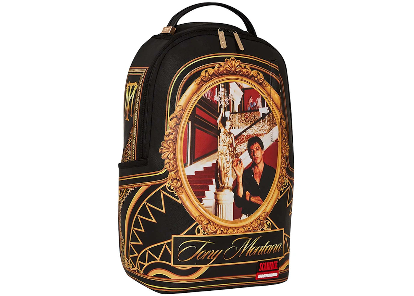 The Sprayground Scarface Stairs Tony Montana Backpack Black/Gold is now available at Side Kicks!