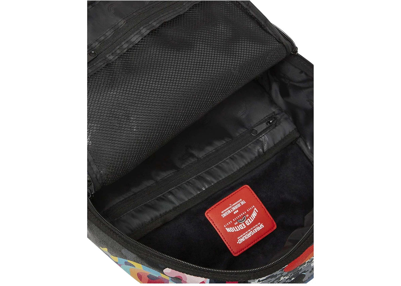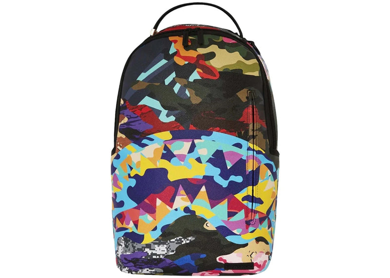 The Sprayground Sliced And Diced Camo Backpack Multi Camo is now available at Side Kicks!