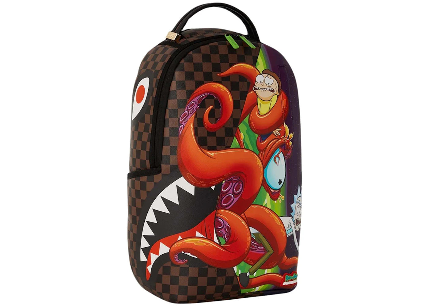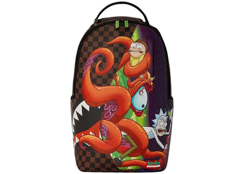 The Sprayground x Rick & Morty Stuck In A Pickle (DLXV) Backpack Brown/Red/Green is now available at Side Kicks!
