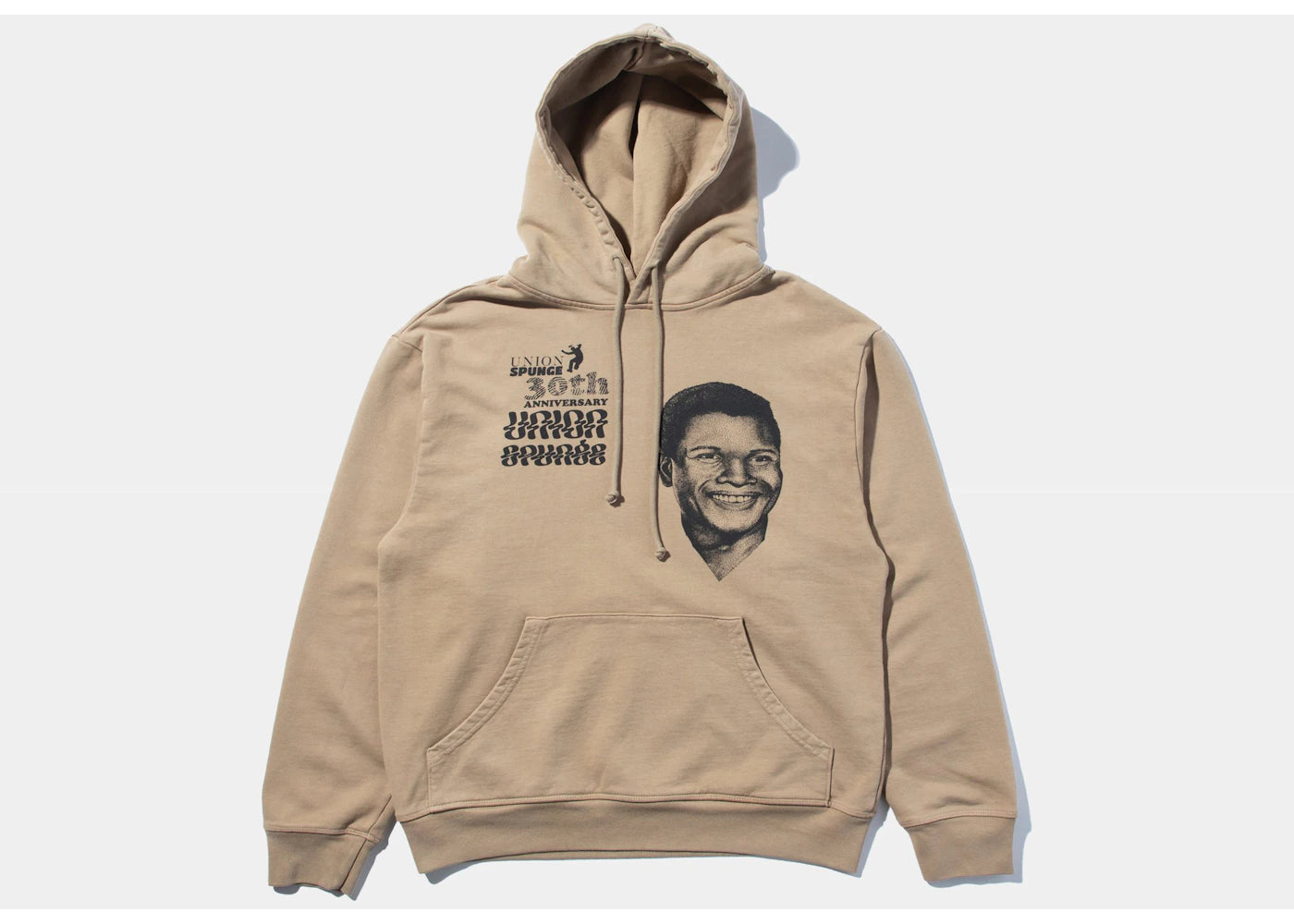 The SPUNGE x Salehe Bembury x UNION 30th Anniversary Hoodie Tan is now available at Side Kicks!