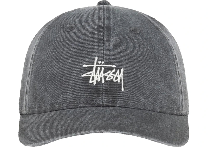 The Stussy Basic Washed Stussy Cap Charcoal is now available at Side Kicks!
