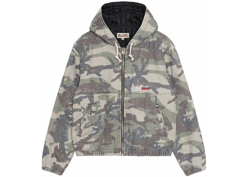 The Stussy Camo Canvas Needlepunch Work Jacket Woodland Camo is now available at Side Kicks!