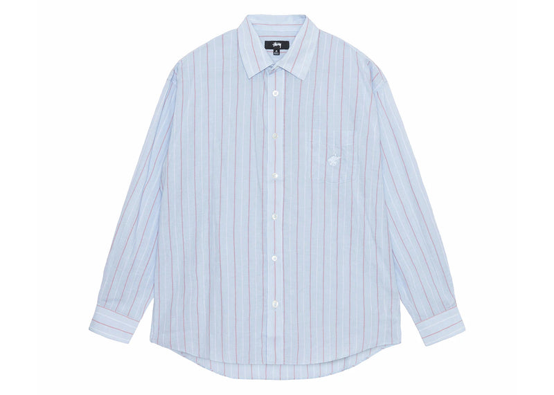 The Stussy Classic Striped Cotton Linen Shirt Light Blue is now available at Side Kicks!