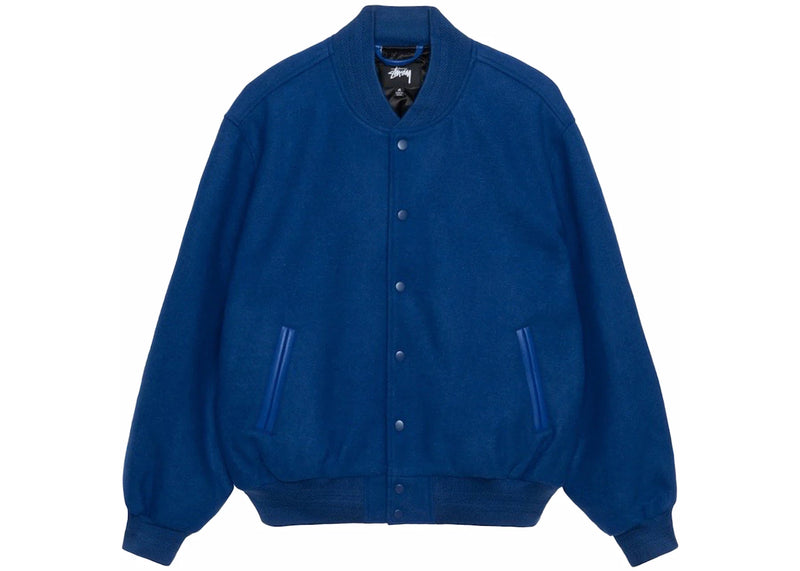 The Stussy Sport Melton Varsity Jacket Royal is now available at Side Kicks!