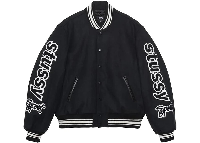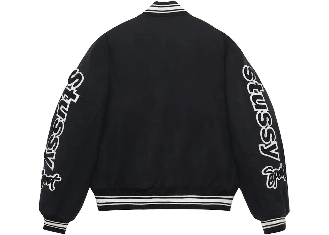 The Stussy Varsity Competition Jacket Black is now available at Side Kicks!