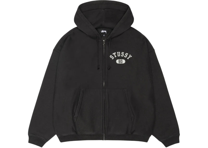 The Stussy Varsity Zip Hoodie Washed Black is now available at Side Kicks!