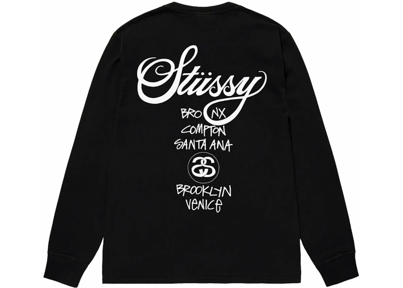 The Stussy World Tour LS Tee Black is now available at Side Kicks!