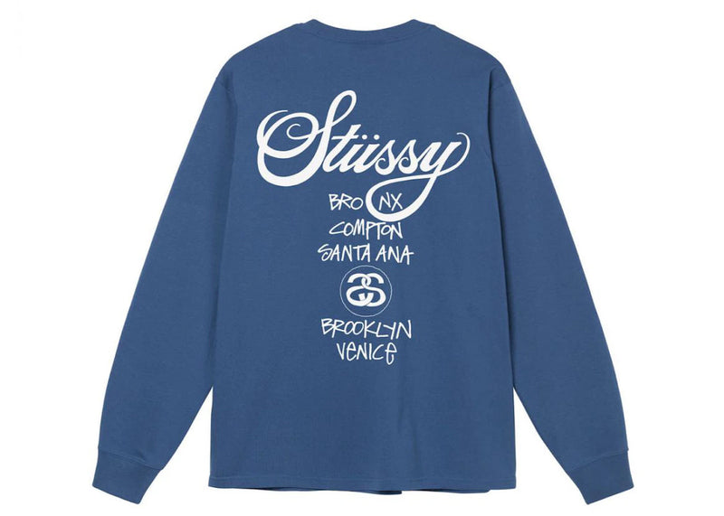 The Stussy World Tour LS Tee Midnight (FW22) is now available at Side Kicks!