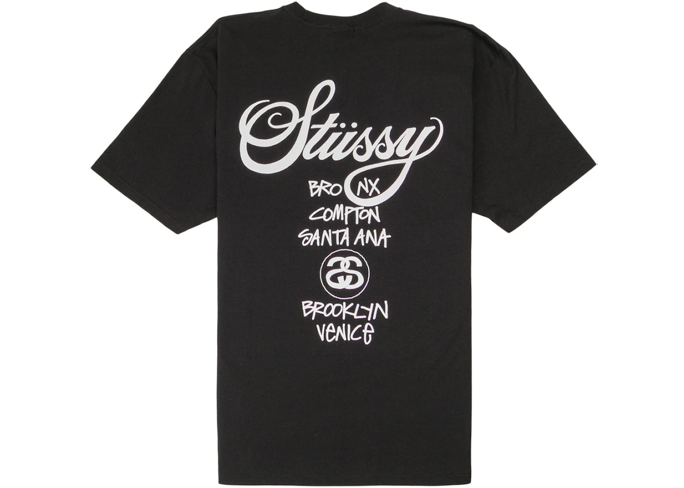 The Stussy World Tour T-shirt Black is now available at Side Kicks!