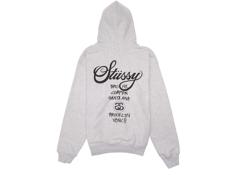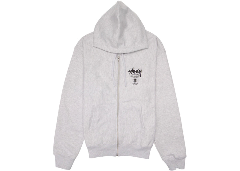 The Stussy World Tour Zip Hoodie Ash Heather (FW22) is now available at Side Kicks!