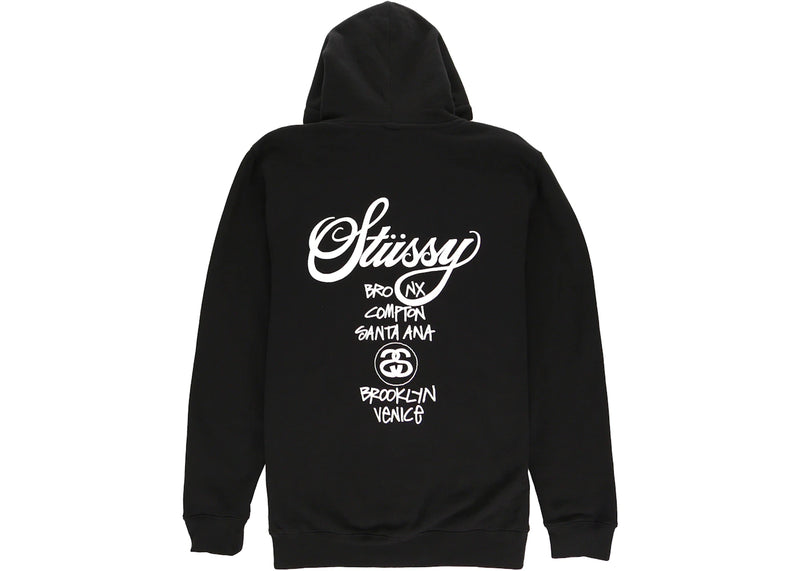 The Stussy World Tour Zip Hoodie Black is now available at Side Kicks!