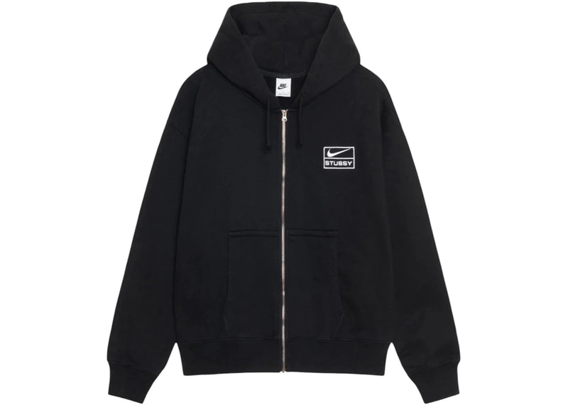 The Stussy x Nike Stone Washed Fleece Zip Hoodie (FW25) Black is now available at Side Kicks!
