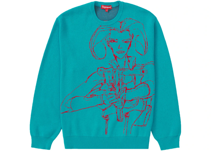 The Supreme Aeon Flux Sweater Cyan is now available at Side Kicks!