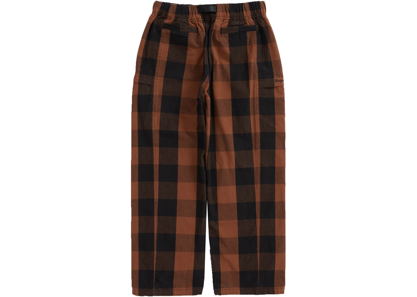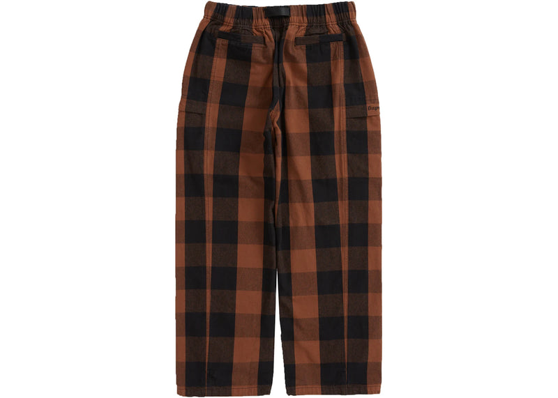 The Supreme Belted Trail Pant Brown Plaid is now available at Side Kicks!