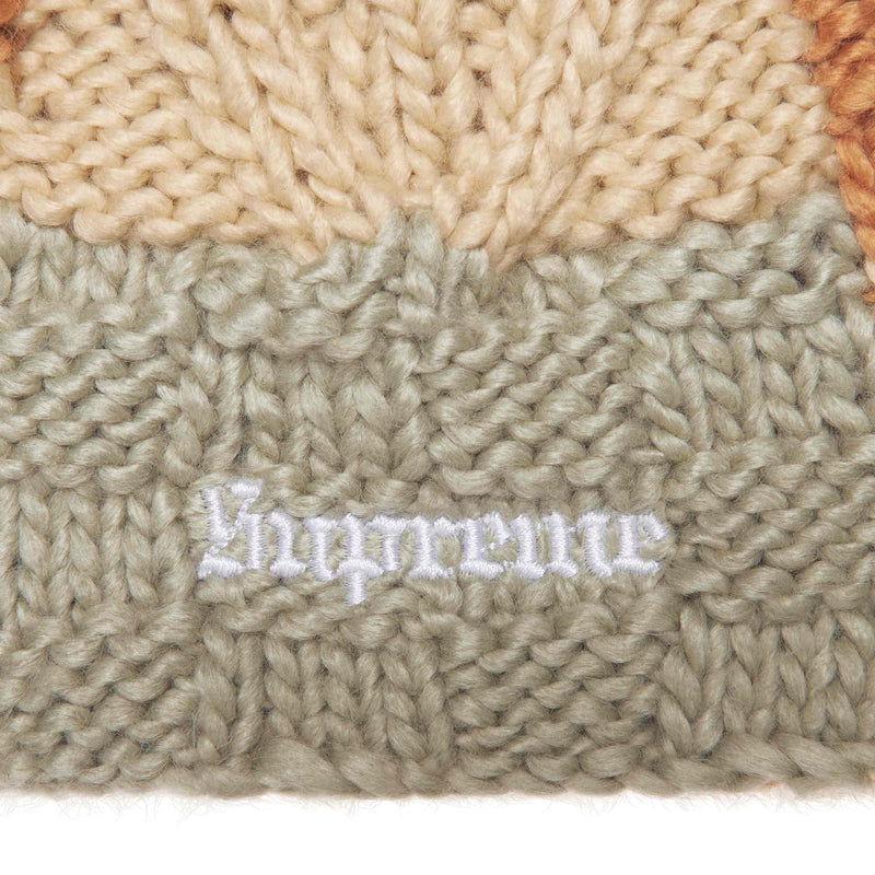 The Supreme Block Knit Beanie - Tan is now available at Side Kicks!