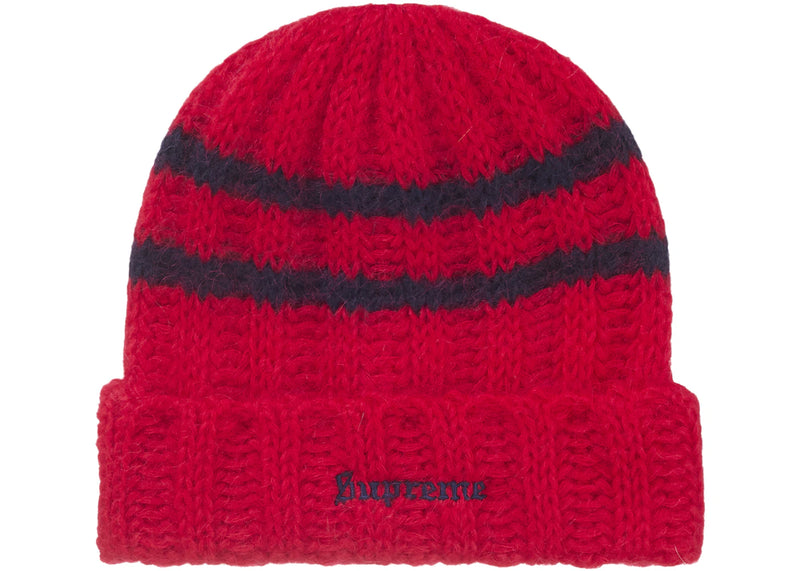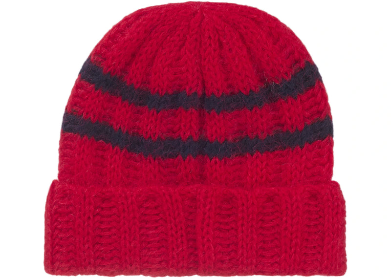 Supreme Brushed Stripe Beanie Red